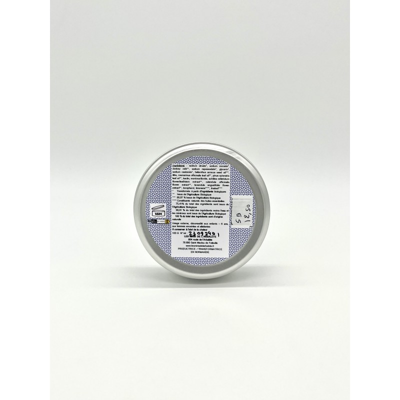 Ingrédients : sodium olivate*, sodium cocoate*, donkey milk**, sodium rapeseedate*, glycerin*, sodium castorate*, helianthus annuus seed oil***, illite, rosmarinus officinalis leaf oil**, pinus sylvestris leaf oil**, kaolin, montmorillonite, achillea millefolium flower/leaf/stem extract**, calendula officinalis flower extract**, lavandula angustifolia flower extract**, tocopherol, limonene****, linalool****